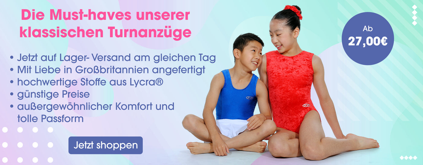 Unsere Turnanzüge werden Ihnen gewiss das Gefühl geben im Mittelpunkt zu stehen, sodass Sie sich voll und ganz auf Ihre Darbietung konzentrieren können. Erkunden Sie daher nun unsere Seite und finden Sie Ihren perfekten Turnanzug und das passende Turnzubehör, egal ob Haargummi, Turnbeutel oder eine neue Sporttasche, wir haben Alles für Sie im Angebot! Kundenzufriedenheit steht bei uns an erster Stelle, daher zögern Sie nicht uns bei Fragen zu kontaktieren.